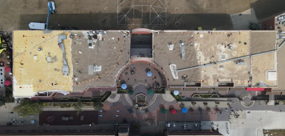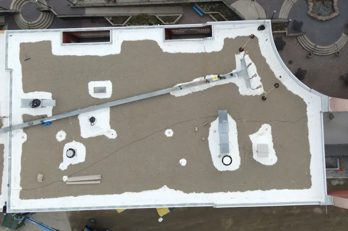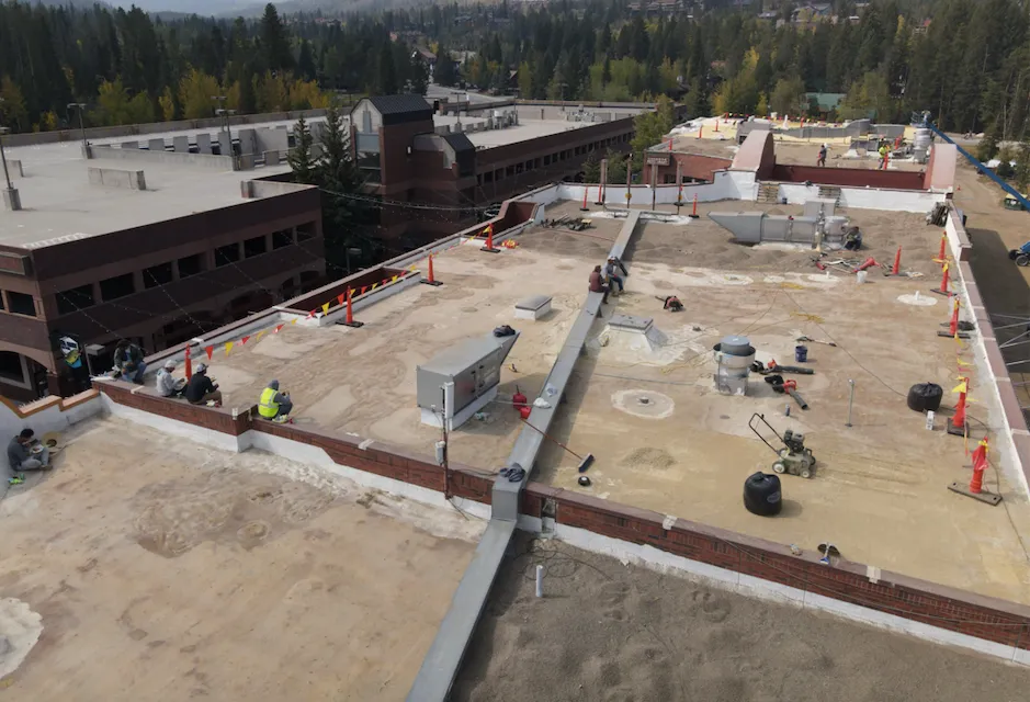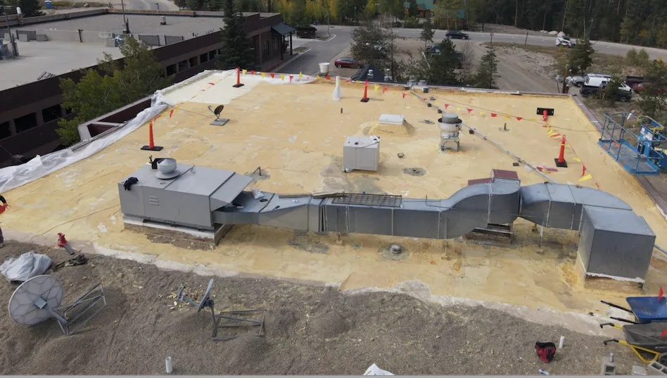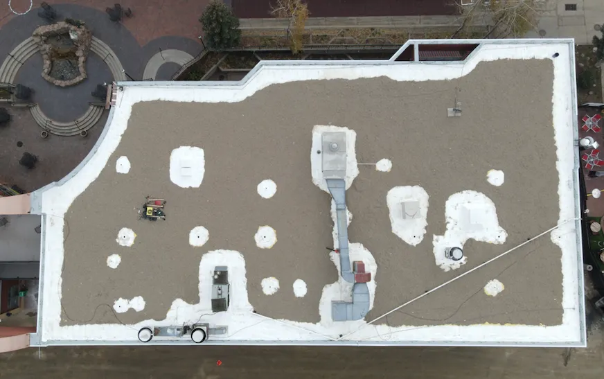 Cooper Creek Square is an iconic structure in the hub of downtown Winter Park, CO. The three-story brick building is where visitors go to enjoy great food, live entertainment & local boutiques. While the original building had a built-up-roof, it upgraded to a foam and gravel roofing system 42 years ago; and it was the existing spray foam roofing system which played a pivotal role in the owners' decision to replace or repair the roof on Cooper Creek Square.