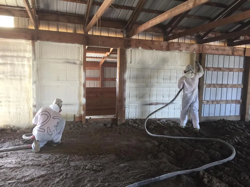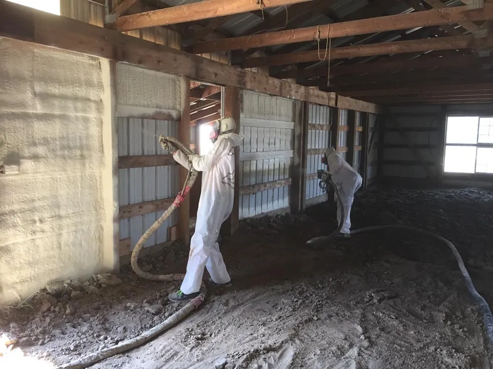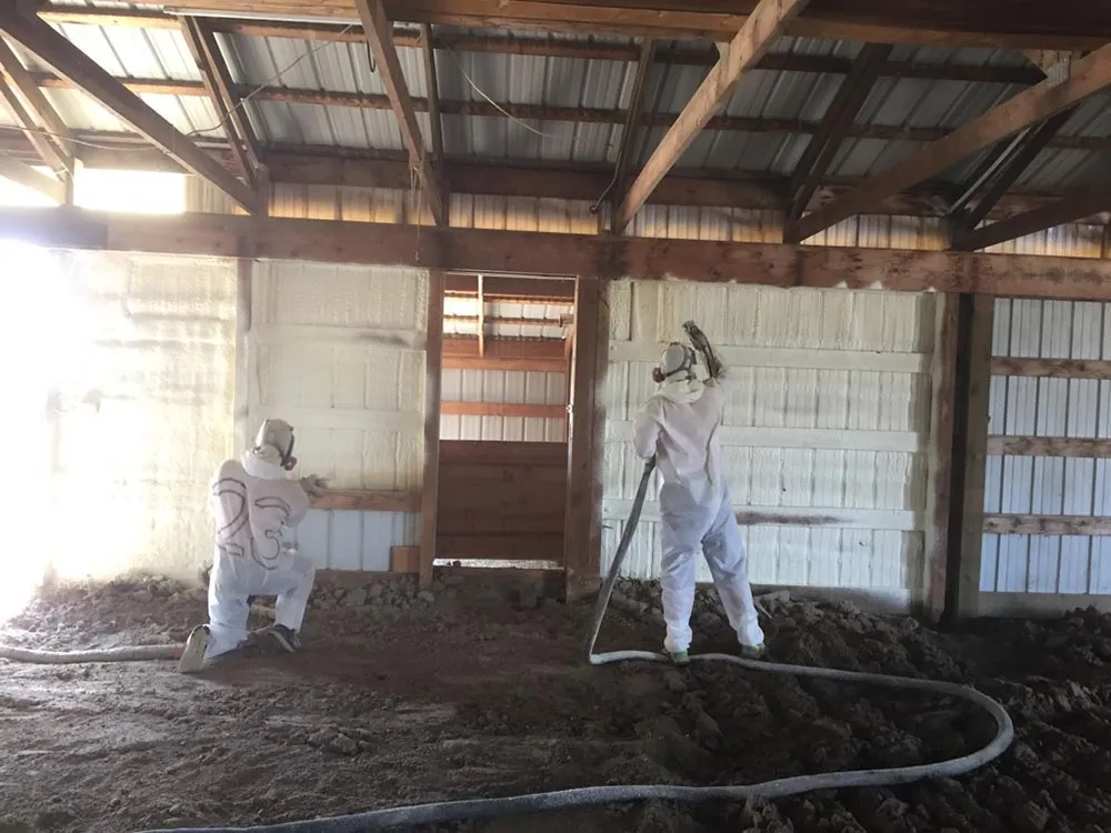 The Colorado weather can be harsh to those that are ill prepared. (That should be on a bumper sticker, if it isn’t already.) What could possibly be worse than not being prepared for the Colorado weather? Answer: owning a metal building or shop and being uncomfortable while you work in it! Well, that is exactly why the owner of this pole barn in Elizabeth, CO chose Titan Applicators to insulate it with 3 inches of closed-cell spray foam insulation. – Spray-applied foam can provide an excellent insulating and/or weatherproofing augmentation to metal buildings. Plus, it bonds to the surface while conforming to irregular shapes, gaps and cracks.