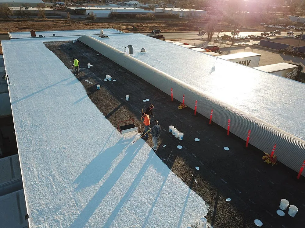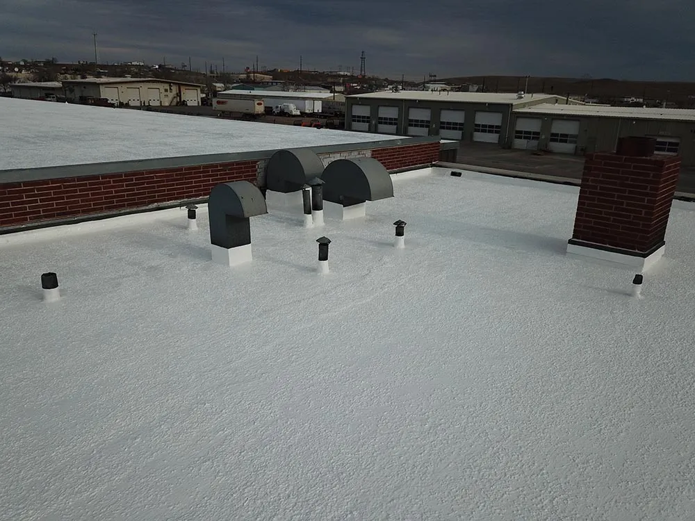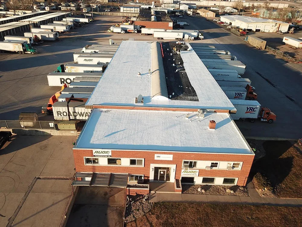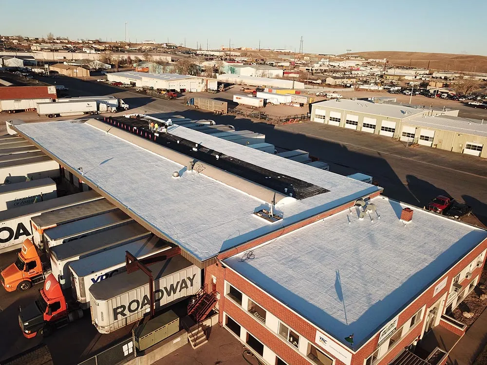 When the average person orders a package, most people don’t think about the process it takes to get from “point A” to “point B.” Well, trucking companies can attest that the shipping and receiving world is fast-paced and schedule-sensitive. They can’t afford delays! – So, when the roof began to leak in a building that housed one of the largest shipping companies West of the Mississippi River, the owner called in Titan Applicators to provide commercial roofing solutions that work. – The Titan crew removed the loose aggregate and debris off the existing built up roof system with a vacuum. Then, we applied a dual component fluid rubber with a high volume low pressure system. This particular commercial roofing product was an economical choice for the Denver building owner. It can be applied directly over the top of the existing roof, has over 800% elongation with an 80% recovery and is self-sealing when punctured.